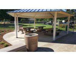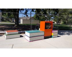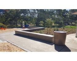 Oneto Park, located in Elk Grove, California, is being updated. The park received new 6' concrete picnic tables (model #101S), trash receptacles (model #500), family barbecues (model #300A), custom seat walls and custom concrete sculptures (books). The trash receptacles featured cast in logos and the seat walls have engraved artwork. The customer saved time by having us manufacture the seat walls as precast instead of poured in place. The books were used in conjunction with the "little library" installed at the park.