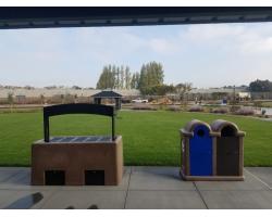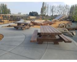 For the first phase of the park, we supplied site amenities that included our precast concrete timber picnic tables and benches, dual containment trash/recycle receptacles, barbecues and a precast concrete sign with posts. The concrete timber picnic tables and benches included reliefs to accommodate future plaques for donors and contributors. This was the first project that featured our new precast concrete timber bench with armrests. The park was also the first to include our timber table with wheelchair companion seating.