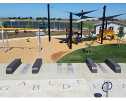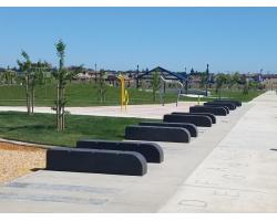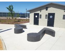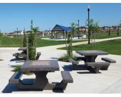Kammerer Family Park is set to open in the Summer of 2019. This park incorporates a music theme in it's playground equipment, sidewalks, and benches. The park will feature shaded and non-shaded picnic areas, a sprayground, tennis courts, amphitheater and an adult fitness area. Outdoor Creations was able to supply the park with several models of concrete amenities. There are two different models of picnic tables, barbecues, and trash/recycling receptacles. A unique feature of this park are the piano key inspired concrete benches/seatwalls. The benches correspond with music note letter markers on the ground. The other seatwall benches are modeled after music notes. With plenty of amenities and a unique theme, the park is sure be a popular attraction in the community.