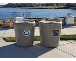 River Islands is a planned community in the Lathrop, California area. Their community has entrusted us to provide durable concrete furnishings including picnic tables, trash and recycle receptacles, custom signs, and round court tables. The receptacles feature the River Islands logo cast in and painted. The custom sign features a base with a brick texture, a concrete sign with park name, and a fabricated metal feature with the River Islands logo.