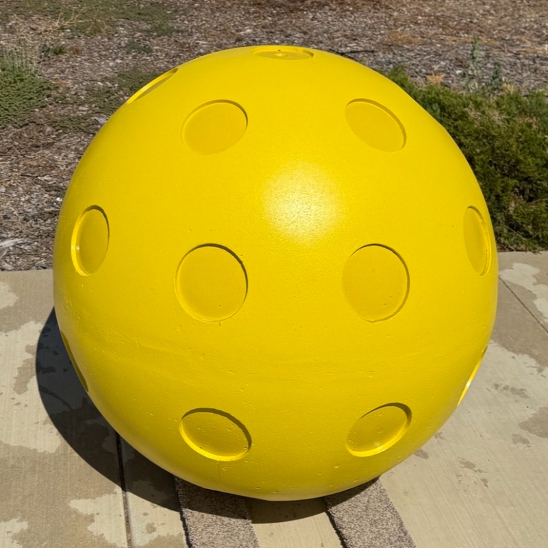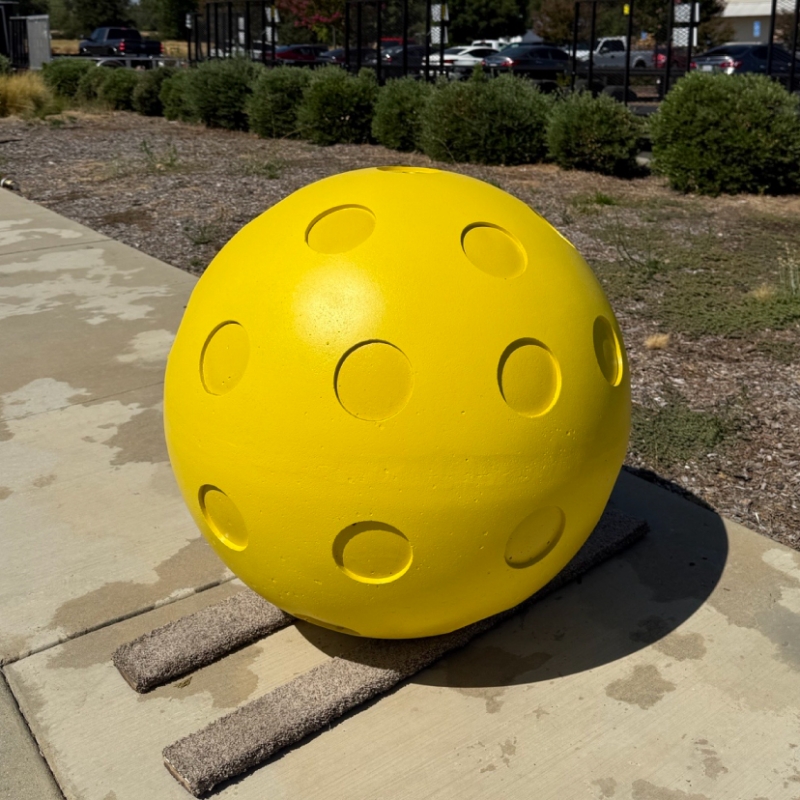 This summer, we worked with a couple different sports parks to provide themed bollards. For the City of San Leandro, California we provided baseball themed bollards. And for a new Pickleball complex, we provided customized 36" diameter sphere bollards. These bollards had faux shallow "holes" cast into the surface, then painted like a pickleball.